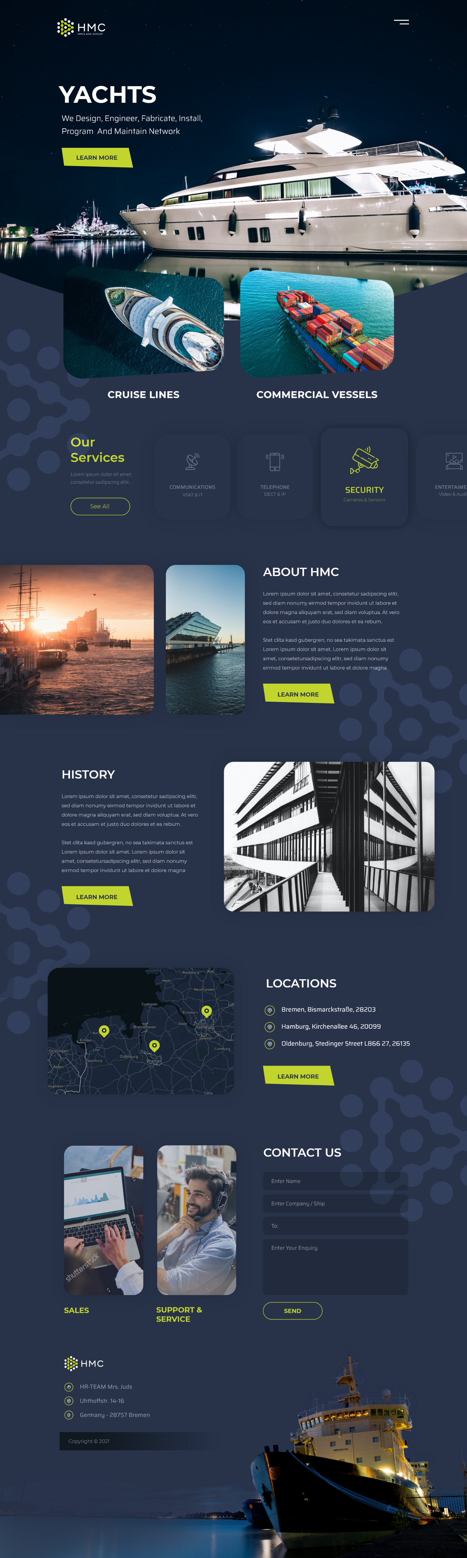 With this design, our team won the "99designs.com's" competition, where more than 60 works were presented by different leading designers from around the world. The competition lasted for 6 days. It is a large German company providing installation services of audio video and security systems on ships and super yachts.